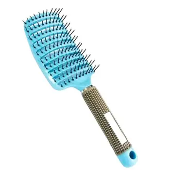 Pente Escova Curvada de Cabelos Desembaraçante Molhado Seco Antiestático Massageador Cabo Siliconado